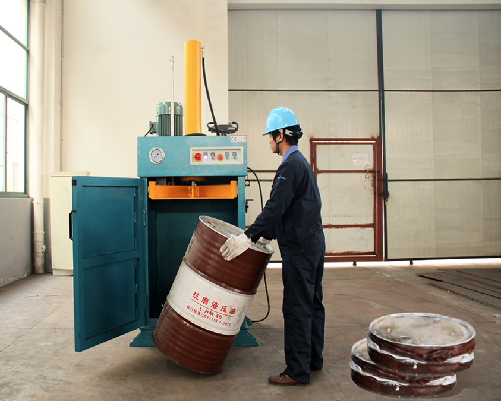 By applying strong hydraulic or mechanical pressure, the iron drum flattening machine reduces the volume of steel drums significantly, making them easier to store, transport, and recycle. This machine is widely used in factories, recycling centers, warehouses, and hazardous waste treatment facilities.